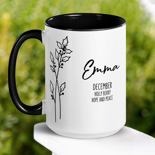 December Birth Flower Mug Personalized, Bridesmaid Gift, Holly Berry Floral Mug 411