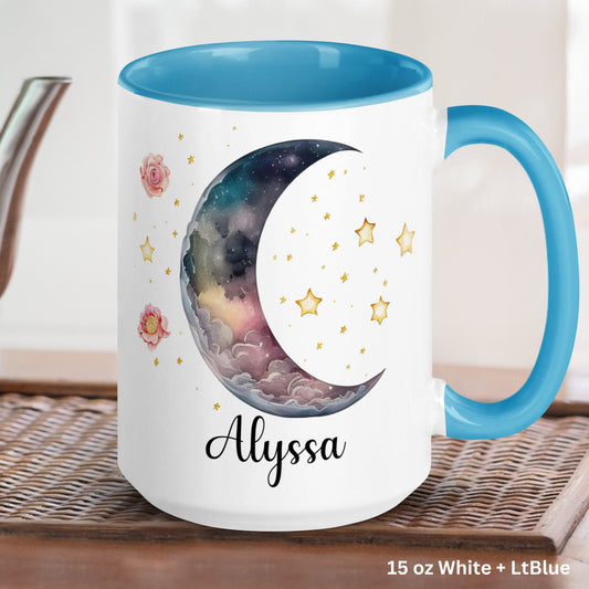Personalized Moon Mug, Celestial Moon, Moon and Stars Coffee Mug Boho Moon Stars 516