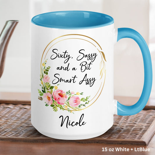 Sixty Sassy and a Bit Smart Assy, Personalized Gift, Sixty Birthday Mom Birthday Funny Coffee Mug 476