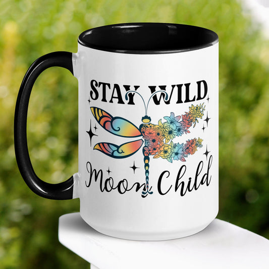 Stay Wild Moon Child Dragonfly Mug, Dragon Fly Lovers, Moon Child Mug Gift for Her 384